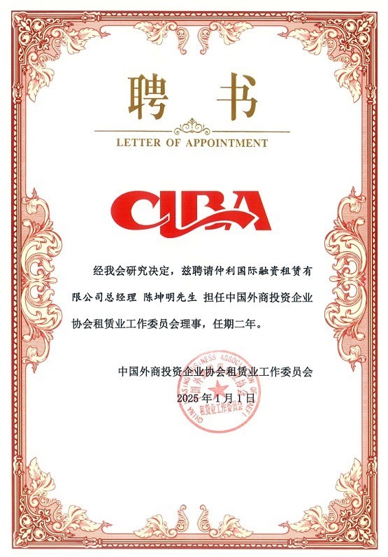 仲利租赁受任中国外资租赁委员会理事单位